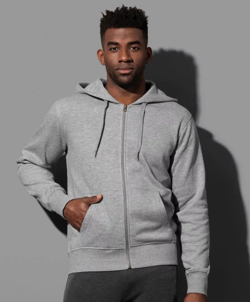Új termékünk ez a férfi, szürke kapucnis, kenguru zsebes pulóver, melyet oldalvarrással, a felső színével megegyező húzózsinóros, dupla rétegű kapucnival és dekoratív varrással láttak el. A szürke pulóver jersey anyagból készült.