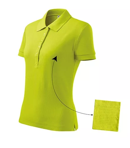A zöld női pamut piké póló anyaga 100% pamutból készült, 170 g/m2 súlyú.
