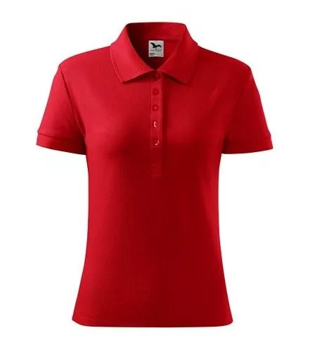 Karcsúsított szabású, kiváló minőségű piros galléros női póló pamut-piké anyagból