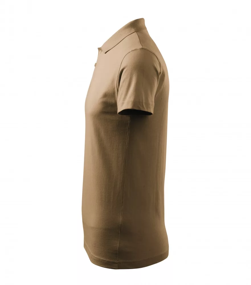 Testhezálló szabású, jó minőségű, homokszín galléros póló single jersey anyagból, szilikonos kezeléssel