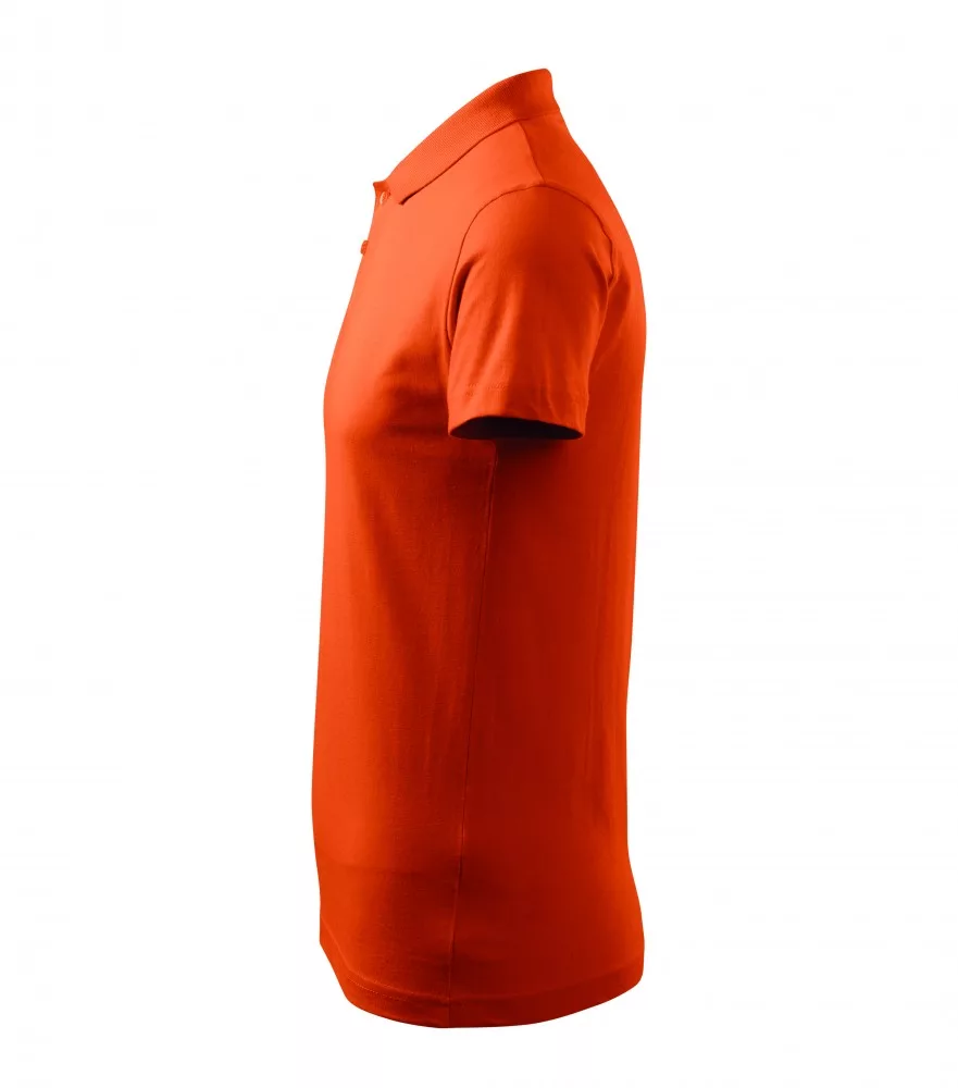Testhezálló szabású, jó minőségű, narancssárga galléros póló single jersey anyagból, szilikonos kezeléssel