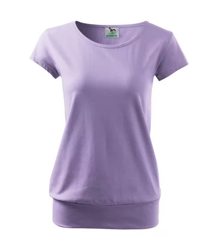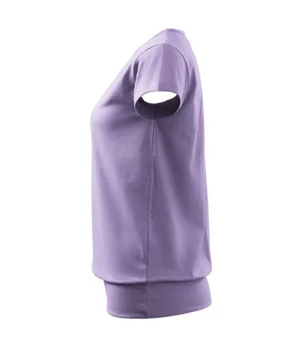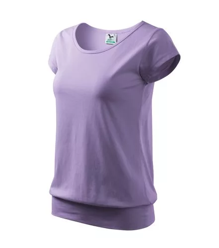 Bővebb szabású, nagyon rövid ujjú jó minőségű lila női póló single jersey anyagból