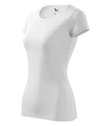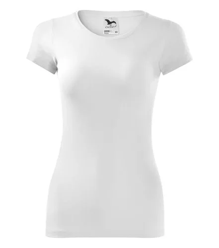 A fehér női póló anyaga 95% pamutból és 5% elasztánból készült, 180 g/m2 súlyú.