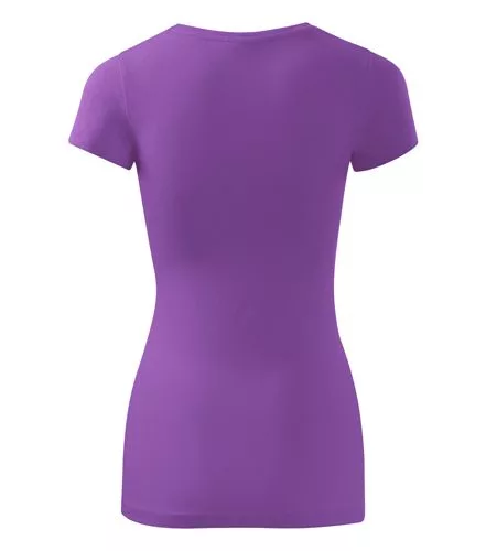 Karcsúsított szabású, kiváló minőségű, lila rövid ujjú női póló, sztreccs anyagból, divatos, keskeny peremű környakkivágással és nyakmegerősítéssel!