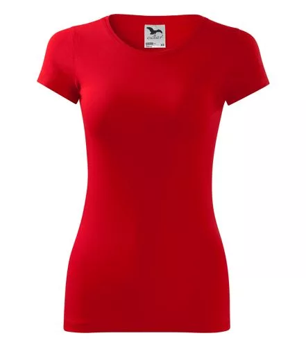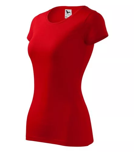 A piros női póló anyaga 95% pamutból és 5% elasztánból készült, 180 g/m2 súlyú.