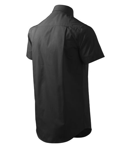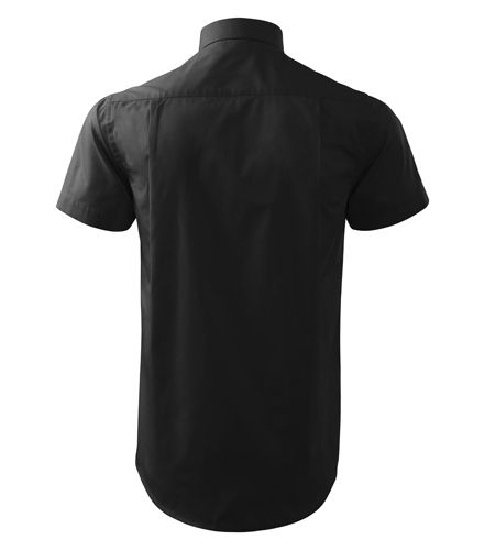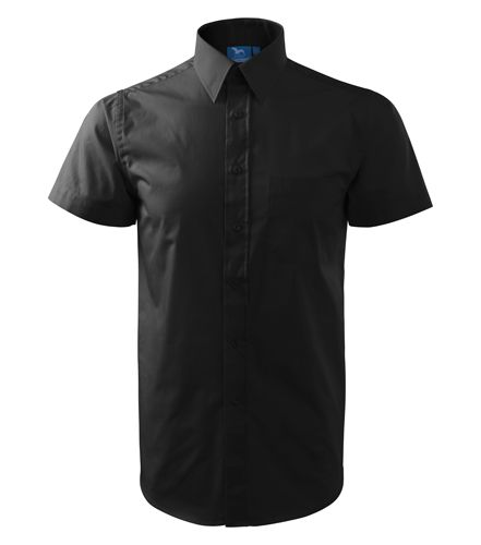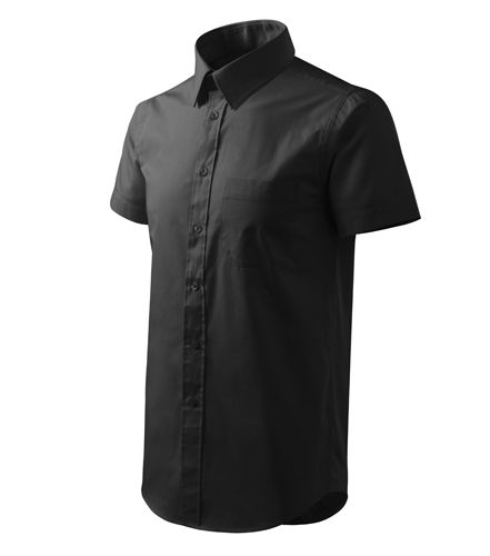 Klasszikus szabású, kiváló minőségű, fekete rövid ujjú ing puplin pamut anyagból kerekített aljjal, klasszikus gallérral és rávarrt zsebbel!