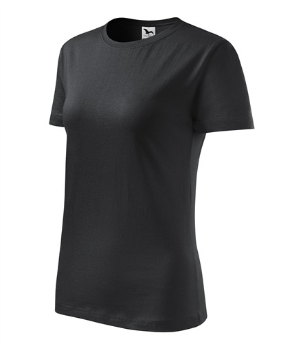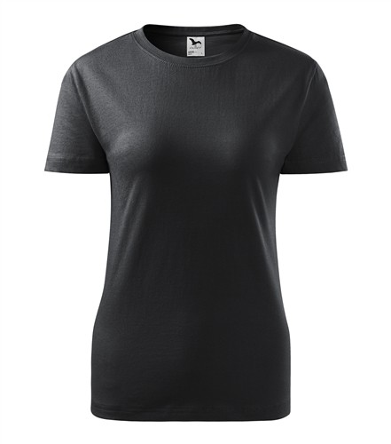 A női szürke póló anyaga 100% pamutból készült, szilikonnal kezelt, 160 g/m2 súlyú.
