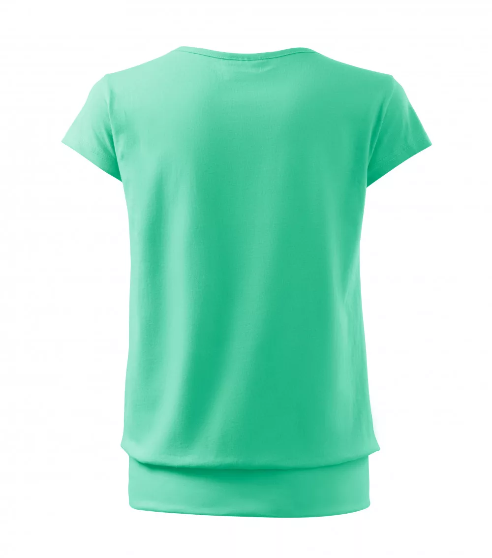 Minőségi termékünk ez a női, bővebb szabású, nagyon rövid ujjú single jersey pamut felső! A póló csípőig ér.