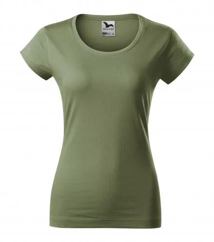 Karcsúsított szabású, kiváló minőségű zöld női póló single jersey anyagból.