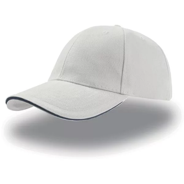 Kiváló minőségű termékünk ez a 6 paneles fehér pamut baseball sapka, kontrasztos színösszeállításban.