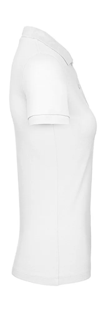 Enyhén karcsúsított szabású, kiváló minőségű fehér galléros női póló pamut-piké anyagból.