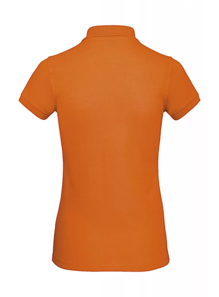 Kiváló minőségű termékünk ez az enyhén karcsúsított szabású narancs galléros női póló pamut-piké anyagból.