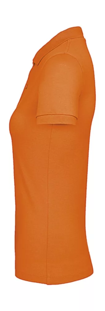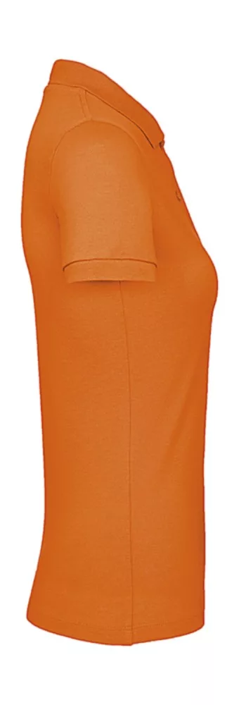 Enyhén karcsúsított szabású, kiváló minőségű narancs galléros női póló pamut-piké anyagból.
