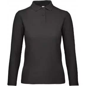 B&C hosszú ujjú galléros női póló Piqué 180 fekete
