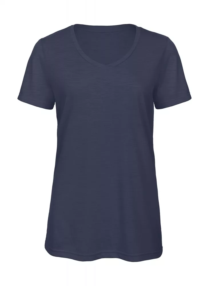 B&C női póló V Triblend 130 melírozott tengerkék