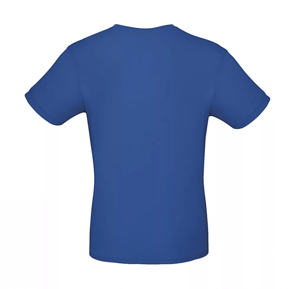 A kék póló anyaga 100% pamutból (előzsugorított, gyűrűsfonású jersey) készült, 145 g/m2 súlyú.