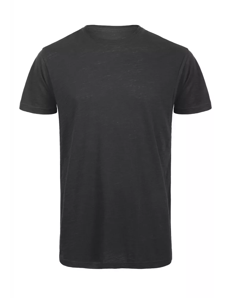 A fekete póló anyaga 100% pamutból (fésült, gyűrűsfonású, organikus) melanzs hatású készült, 120 g/m2 súlyú.