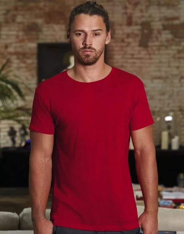Klasszikus szabású, kiváló minőségű piros póló, single jersey, melanzs hatású anyagból
