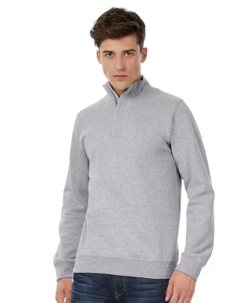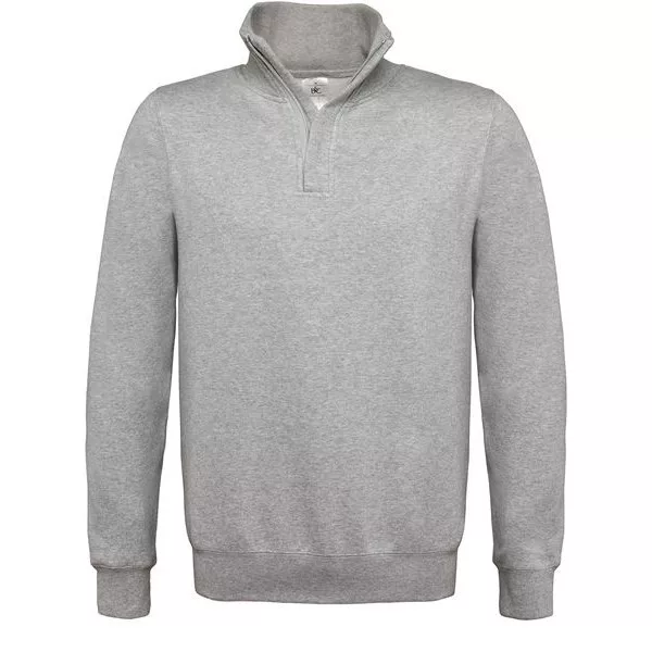 B&C pulóver Cotton Rich 1/4 Zip Sweat 280 melírozott szürke