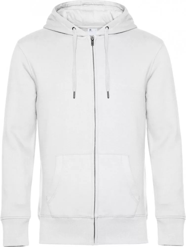 Kapucnis, cipzáros, kenguru zsebes, kiváló minőségű fehér pulóver, előzsugorított pamut anyagból