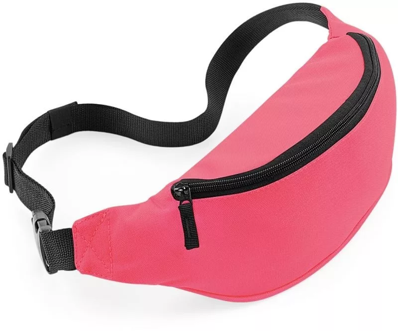 A pink övtáska egy nagy méretű főrekesszel, valamint elöl és hátul cipzáras zsebbel készült.