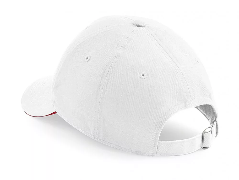 Kiváló minőségű termékünk ez a 6 paneles fehér baseball sapka kontrasztos színű, előformázott szendvics silddel.