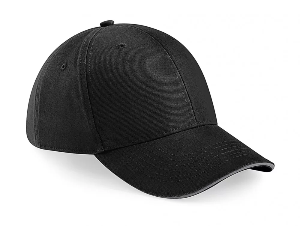 Kiváló minőségű termékünk ez a 6 paneles fekete baseball sapka kontrasztos színű, előformázott szendvics silddel.