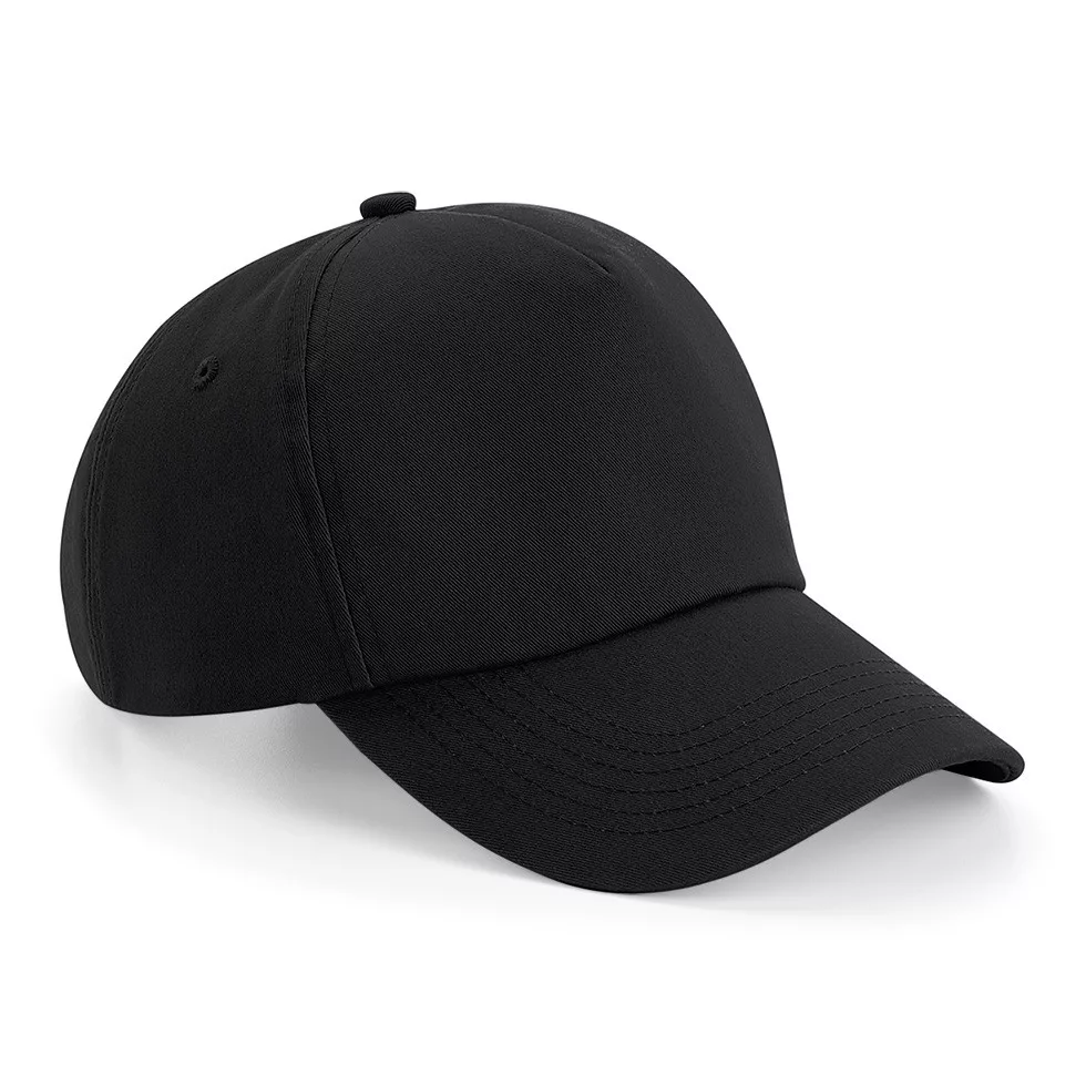 Modern, 5 paneles, kiváló minőségű fekete baseball sapka pamut anyagból, struktúrált első panellel