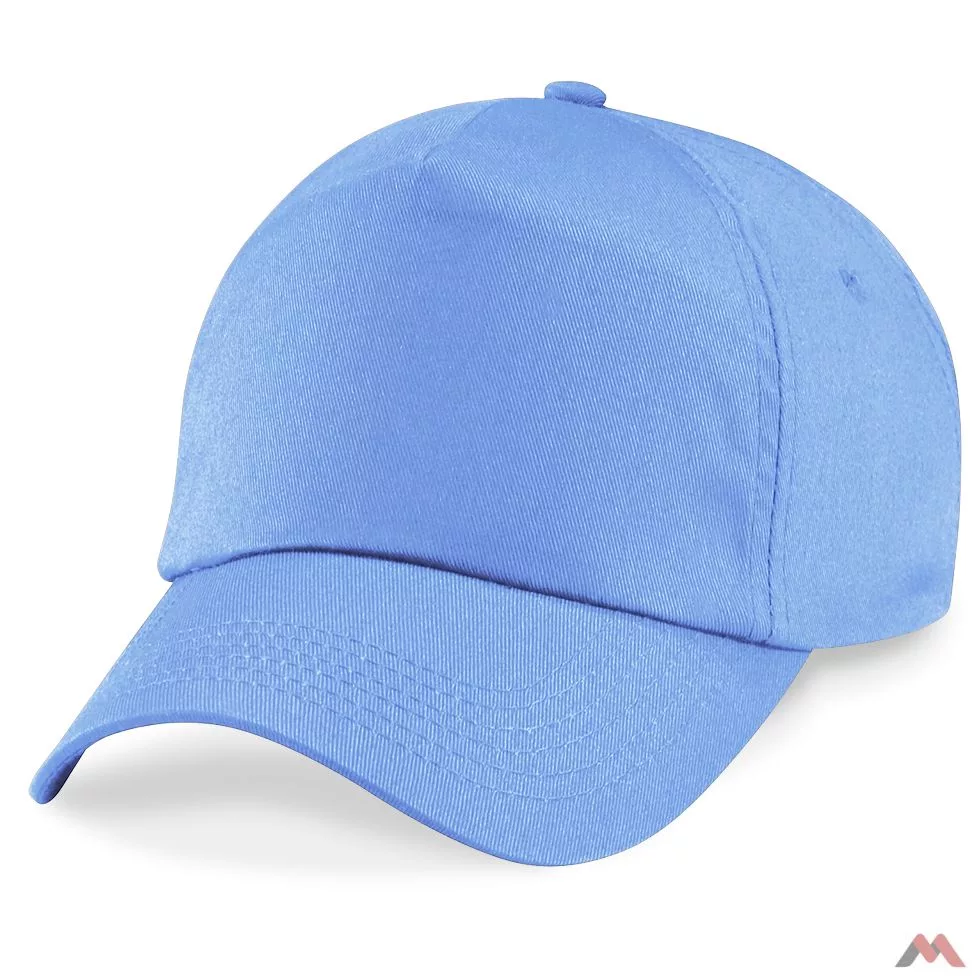 Modern, 5 paneles, jó minőségű kék baseball sapka pamut anyagból, varrás nélküli első panellel