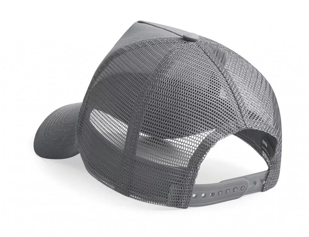 A szürke sapka első panele és a sild anyaga 100% pamutból, a hátsó panel anyaga 100% poliészterből (háló) készült.