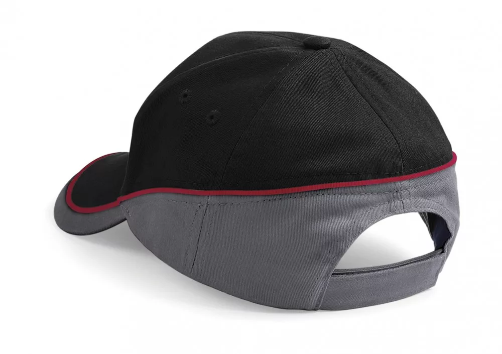 Beechfield baseball sapka Teamwear Competition 5P fekete-grafitszürke-piros