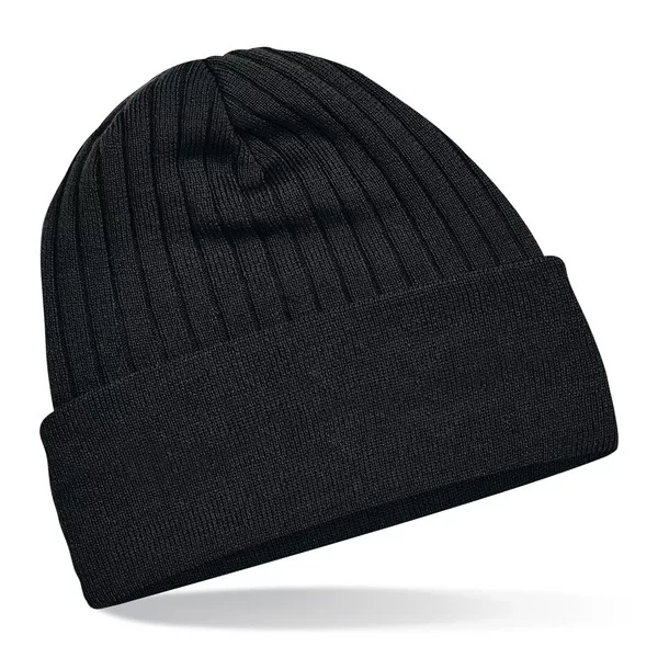 Klasszikus fazonú, meleg, kiváló minőségű, fekete sapka, dupla rétegű, kötött poliakril anyagból, Thinsulate béléssel és nem bordázott visszahajtott széllel a könnyebb logózás érdekében!