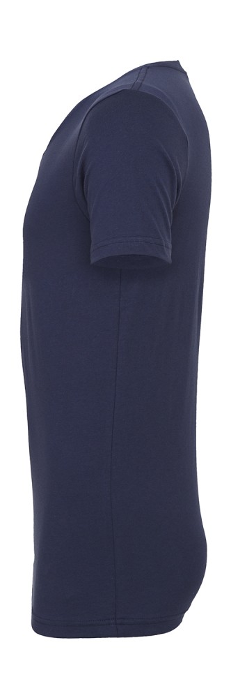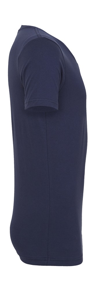 A kék rövid ujjú póló anyaga 100% pamutból (fésült, gyűrűsfonású) készült, 142 g/m2 súlyú.
