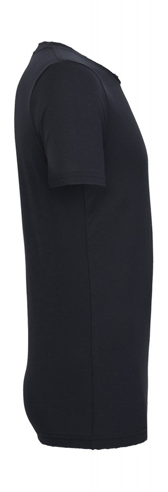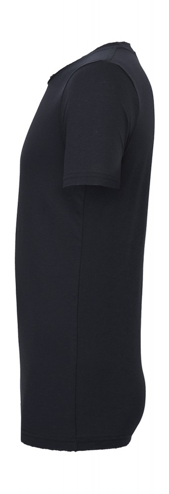 A kék rövid ujjú póló anyaga 50% poliészterből, 25% pamutból (fésült, gyűrűsfonású) és 25% viszkózból készült, 135 g/m2 súlyú.