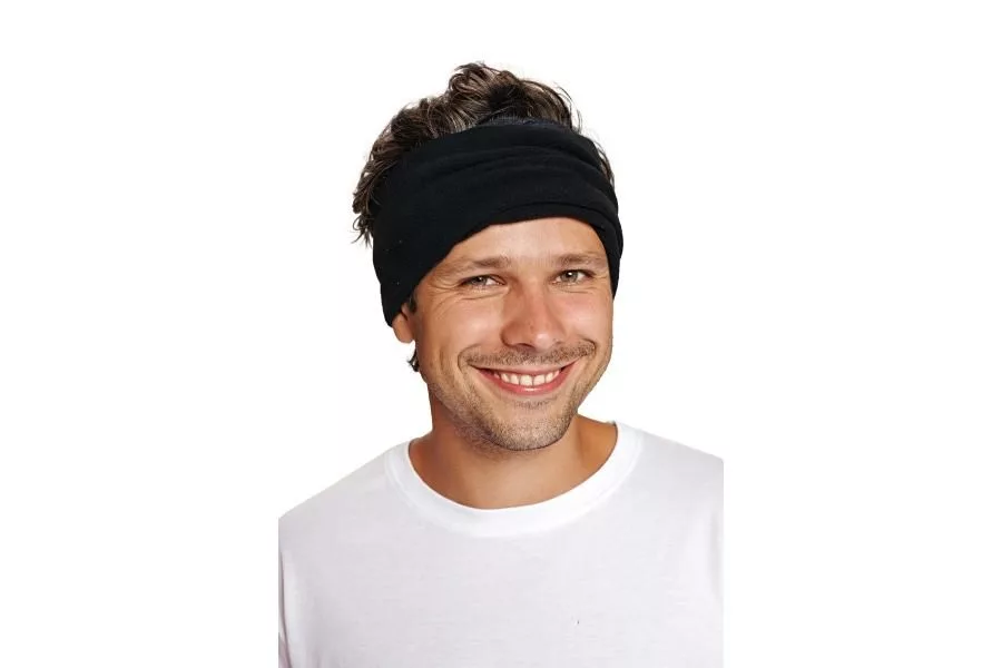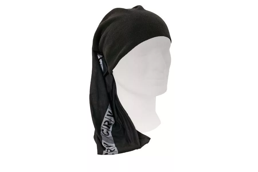 A többfunkciós sál belső rétege meleg polár. A fekete sál viselhető fejpántként, sálként és sapkaként is.
