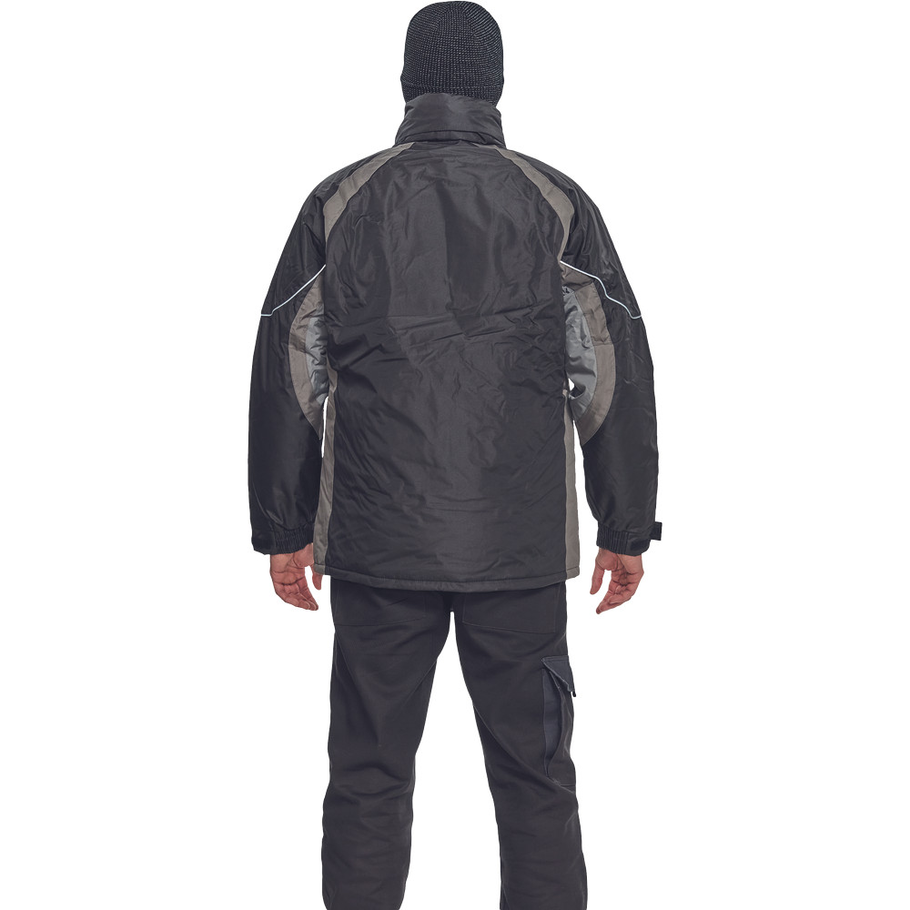 A fekete téli kabáton elhelyezetok sötétben jól láthatóvá teszi a viselőjét!
