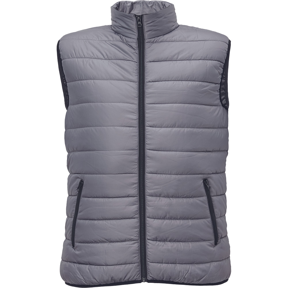 A szürke mellény külső felülete 100% poliészterből (taffeta), 63 gramm/m² súllyal, a bélés anyaga 100% poliészterből (taffeta), míg a töltő anyag 100% poliészterből készült, 200 g/m² súllyal.