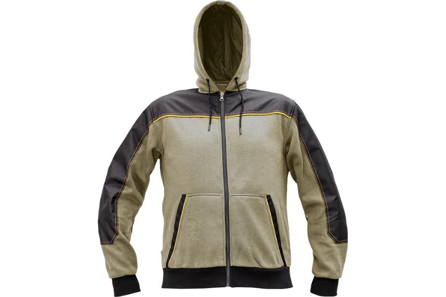 Kiváló minőségű termékünk ez a klasszikus szabású munkás zöld pulóver kapucnival és kenguru zsebbel, mechanikus ártalmak ellen, a népszerű Cremorne kollekcióból!