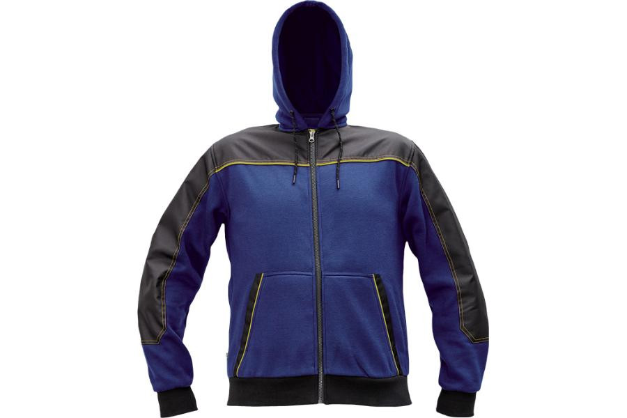 Kiváló minőségű termékünk ez a klasszikus szabású munkás kék pulóver kapucnival és kenguru zsebbel, mechanikus ártalmak ellen, a népszerű Cremorne kollekcióból!