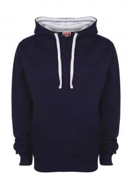 Kapucnis, kenguru zsebes, jó minőségű, kék pulóver kontrasztos színű jersey anyagból!