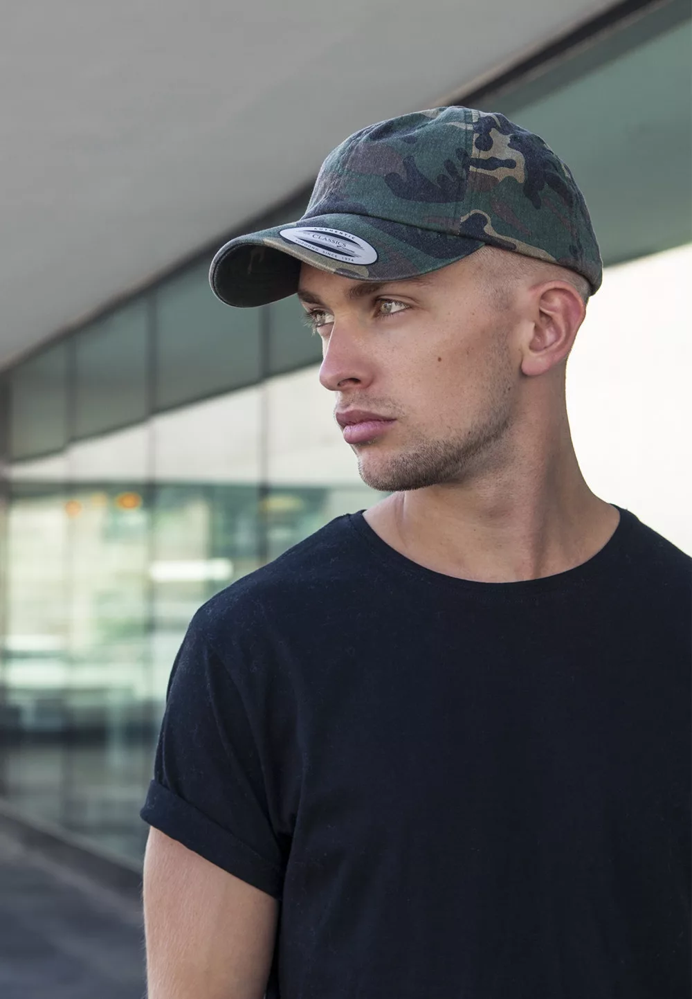 Flexfit baseball sapka Camo Washed 6P koptatott terepszín zöld