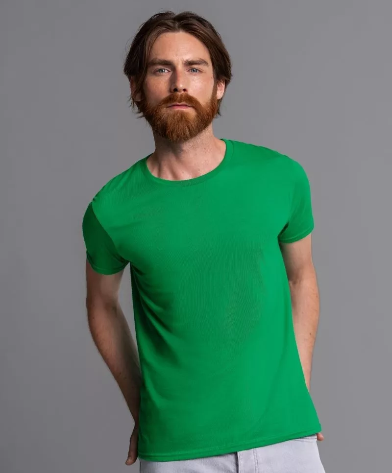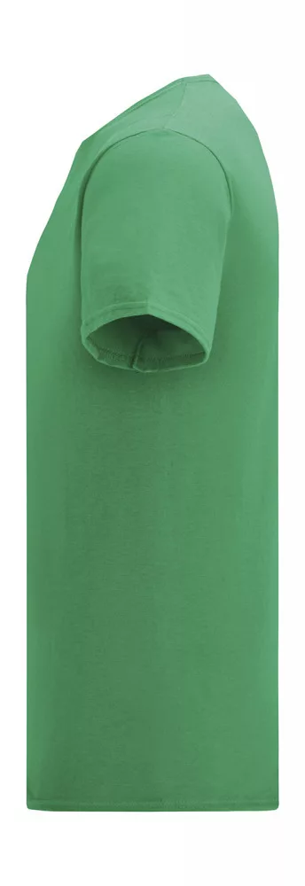 Szűkebb fazonú, kiváló minőségű zöld póló bevarrt ujjakkal és nyakmegerősítéssel