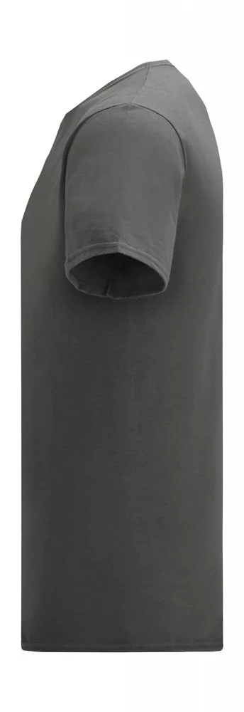 A szürke póló anyaga 100% pamutból (fésült, gyűrűsfonású) készült, 150 g/m2 súlyú. Puha tapintású, körkötött anyagból készült.