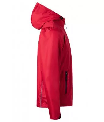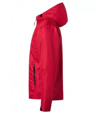 Kiváló minőségű termékünk ez a klasszikus szabású víz- és szélálló, légáteresztő piros dzseki állítható kapucnival és 2 cipzáros oldalzsebbel.