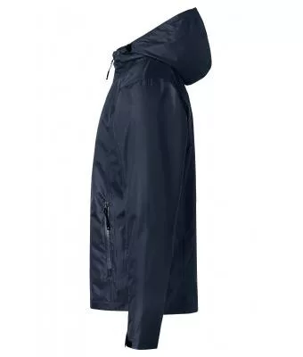 Kiváló minőségű termékünk ez a klasszikus szabású víz- és szélálló, légáteresztő kék dzseki állítható kapucnival és 2 cipzáros oldalzsebbel.