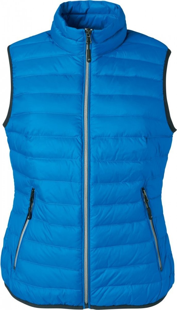 Karcsúsított szabású, kiváló minőségű szél- és vízálló kék bélelt női mellény kontrasztos színösszeállításban!