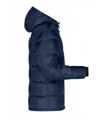 Modern szabású, James&Nicholson JN1168 téli dzseki, állítható kapucnival, a teljes hosszúságú rejtett szélvédő állvédővel, YKK 2 irányú cipzárral, 1 belső- valamint 2 cipzáras oldalzseb, elasztikus belső mandzsettával és kontrasztos színű béléssel, újrahasznosított poliészter Ripp-Stop szövetből, újrahasznosított poliészter béléssel, DuPont™ Sorona® Aura párnázattal (megújuló, bio alapanyag), valamint víz- és szennyeződéstaszító a BIONIC-FINISH®ECO bevonattal!