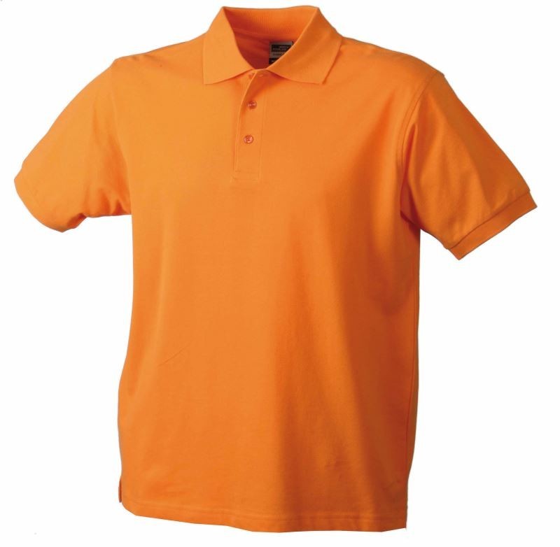 Bordázott ujjvégekkel és gallérral készült. A narancs póló színben megegyező, 3 gombbal záródik. A váll és nyakrész anyaga duplán tűzött a megfelelő tartás érdekében.