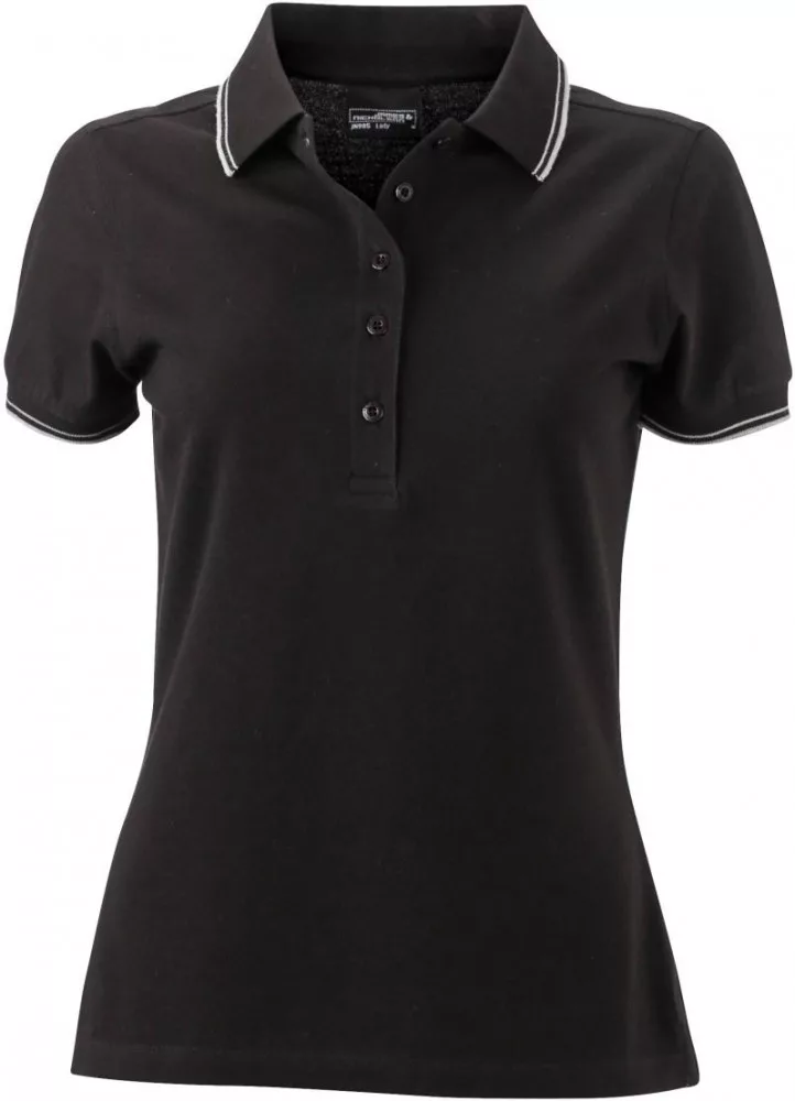 James&Nicholson galléros női póló Piqué 190 fekete-fehér