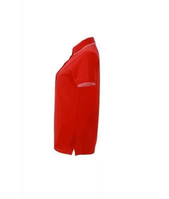 Karcsúsított szabású, kiváló minőségű piros galléros női póló kontrasztos színösszeállításban.